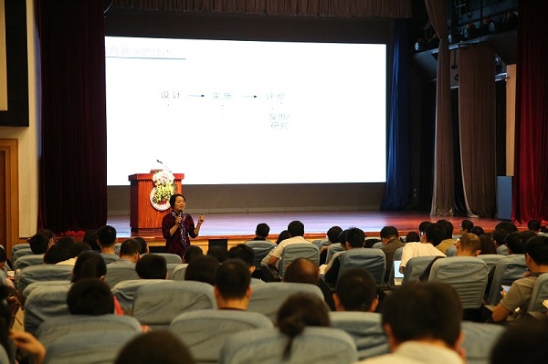 在谈到“提高教学成功概率应遵循的教学设计原则”这个问题上,刘教授提出了“四个必须”:“必须充分考虑社会发展对学生的要求”、“必须以学生为导向”、“必须应用系统方法”以及“必须以教与学相关的理论作为科学决策的依据”。刘教授列举自己在教学过程中的亲身经历,强调教育教学要帮助到每一个学生,要承认并发挥每个学生的潜力,学校的责任和老师的使命是寻找能使每一个学生达到其最高学习和发展水平,并得到健康成长与发展的条件。