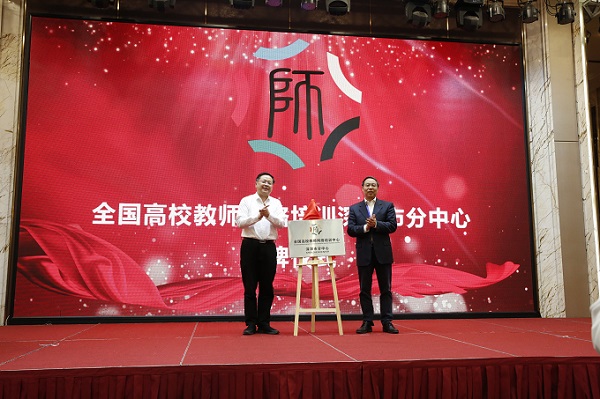 随后来到本次会议的重要环节——揭牌仪式。由高等教育出版社副总编辑、网培中心主任林金安与深圳大学副校长徐晨共同为“全国高校教师网络培训深圳市分中心”进行揭牌。