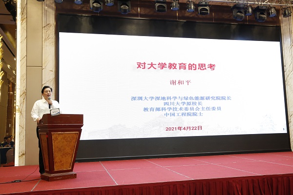 上半场会议的重磅嘉宾为中国工程院院士谢和平。谢院士发表了《对大学教育的思考》的主题报告。谢院士从教育的本质与责任、大学应该教会学生什么、目前大学的缺失、“课堂+课程”的作为、大学教育的好老师、一流大学与教育强国的方向等六个方面阐述了对大学教育的思考。他强调,教育的本质和核心是教化每一个人的潜质和天赋,培养每个人自由全面发展的能力;教育的责任是通过教化激发和彰显人的本善,让每个学生都能成才,都具有自由全面发展的能力;教育的生命在于爱心的传递,在于教与学的互动,在于情感的投入。