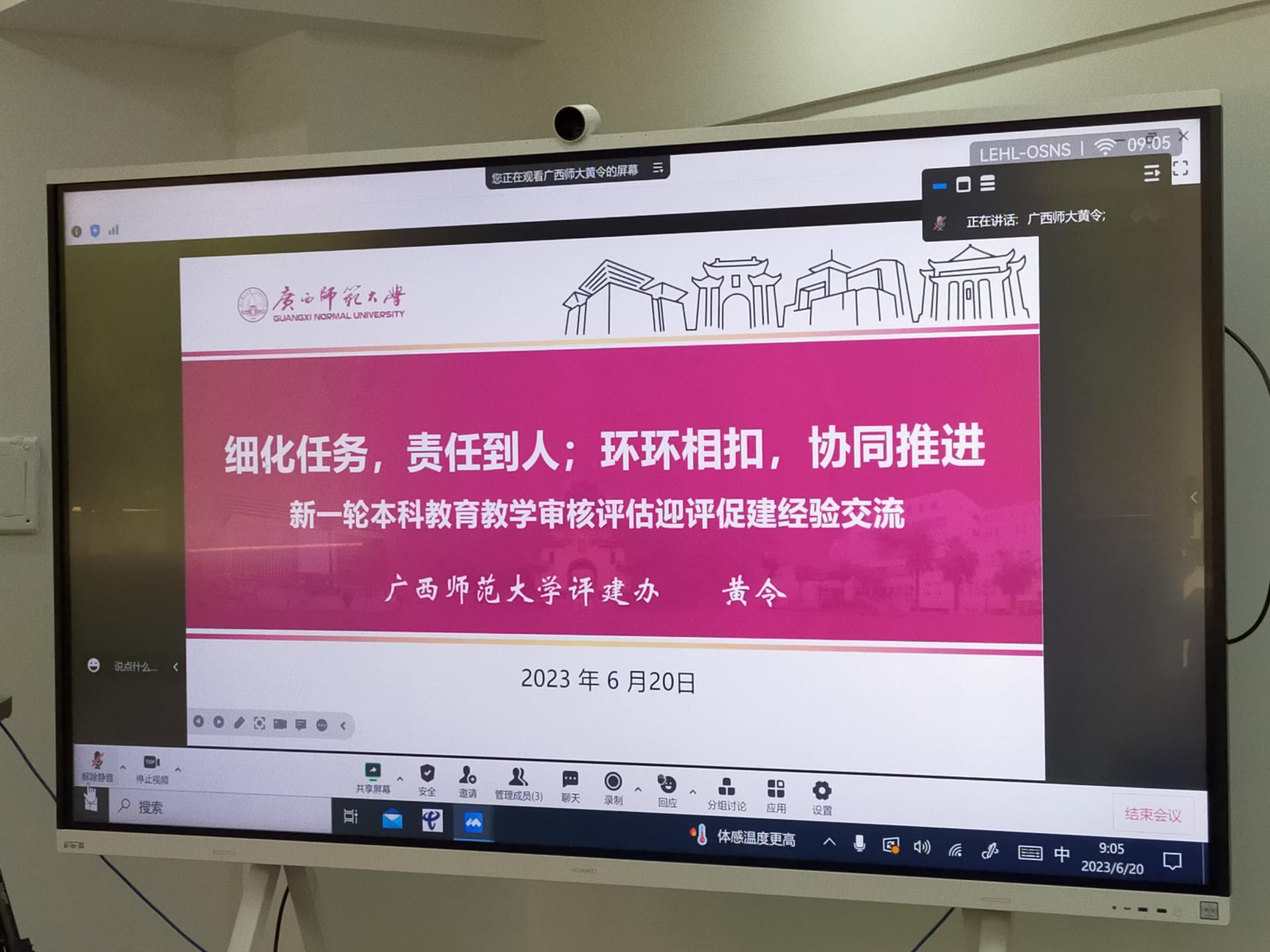 2024年上半年我校将迎来新一轮审核评估。为进一步做好评建工作,评建办持续开展审核评估评建工作学习和培训,于6月20日上午邀请成广西师范大学本科教学评估与建设办公室黄令主任就我校审核评估评建工作进行线上培训。会议由教务部陈小霞副主任主持,评建办相关教师参会。