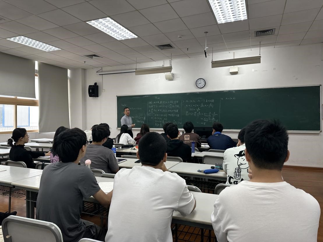 4月14日上午,数学科学学院陈之兵老师为青年教师们展示《数学分析(2)》公开课。本节课围绕lebesque定理展开,通过“定理-定义推导-应用”的闭环式教学,引导学生逐步掌握核心概念。课堂伊始,陈老师以泰勒定理为切入点,串联微积分知识体系,随后师生共同推导“空集是零测集”的定义,并借助实例阐释抽象理论。授课中,陈老师巧妙结合柯西准则与新课内容,通过正反向推理引导学生自主发现引理,并灵活运用新数学工具解决问题。全程采用传统板书教学,配合高频互动问答,学生专注度高,课堂节奏张弛有度。课程展现的数学学科逻辑严密性与教学启发性吸引着来听课的青年教师。