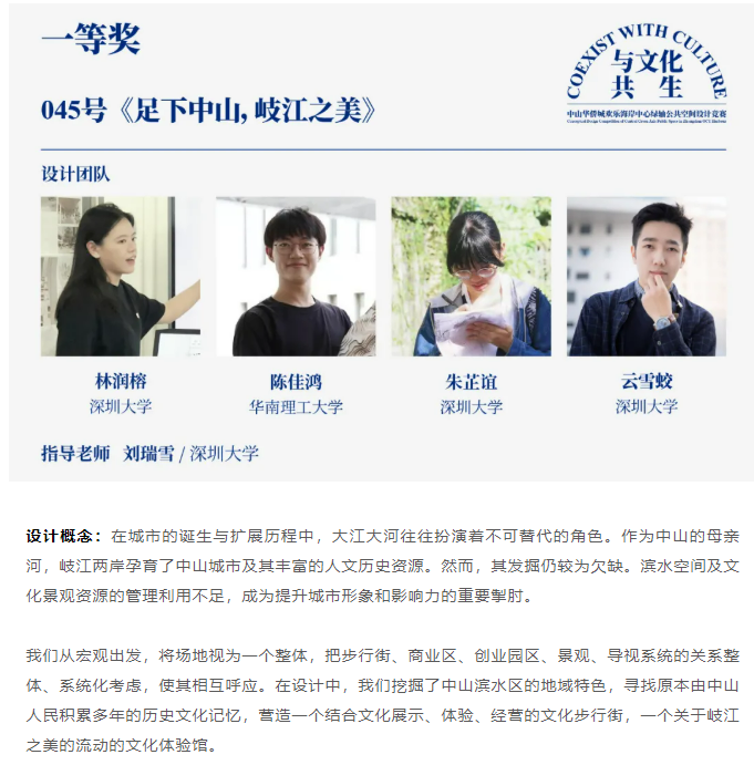 刘瑞雪老师指导的《足下中山、岐江之美》获中山华侨城欢乐海岸中心绿轴公共空间设计竞赛一等奖
