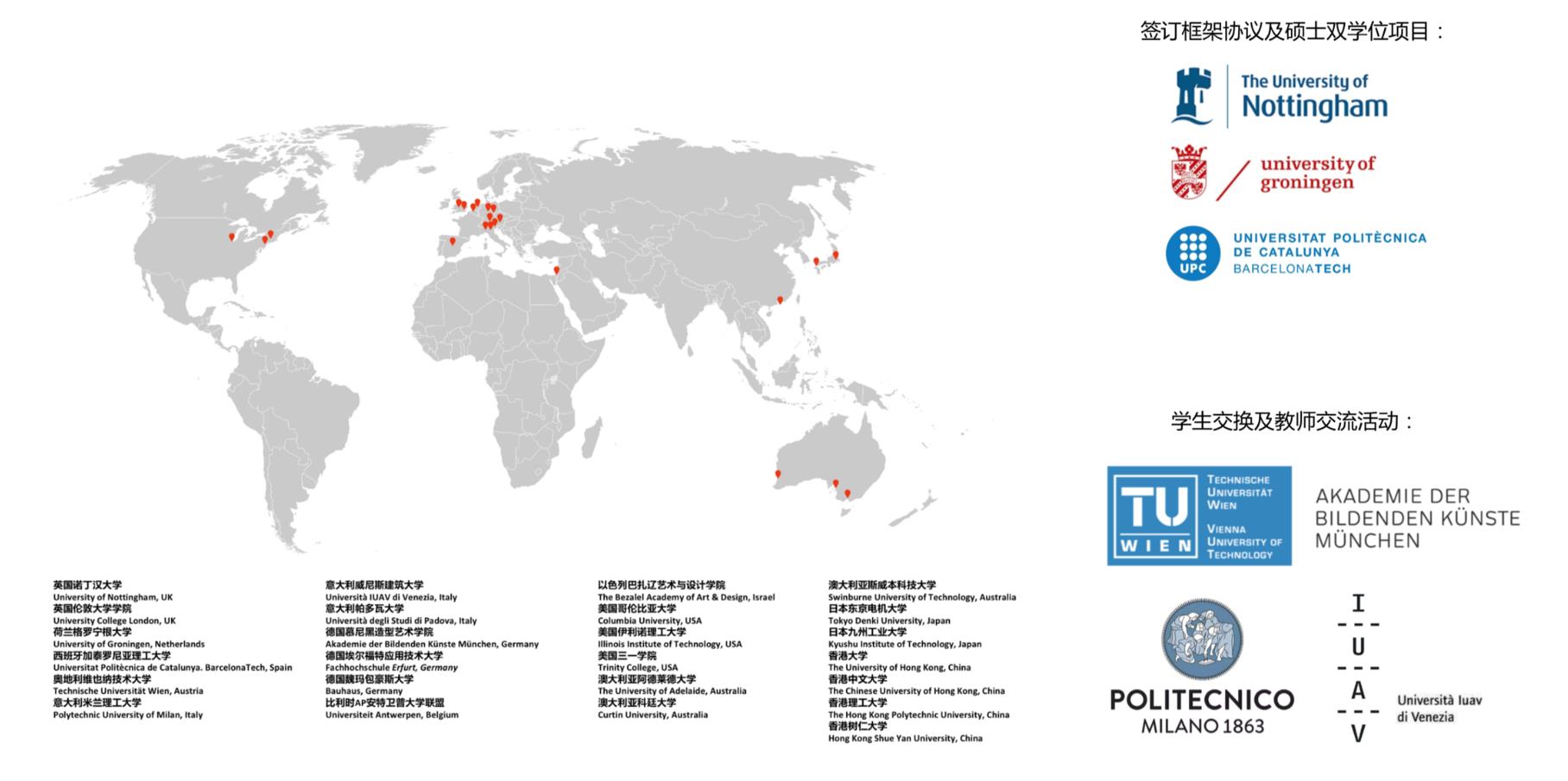 深圳大学建筑系立足粤港澳大湾区和深圳特区,积极拓展国内外学术交流,搭建了不同层次的对外交流平台,与多所知名欧美建筑院校设有双学位和交换课程。学术交流网络覆盖欧 美、亚太、大洋洲等 60 余所高校(机构),直通顶级欧美名校。