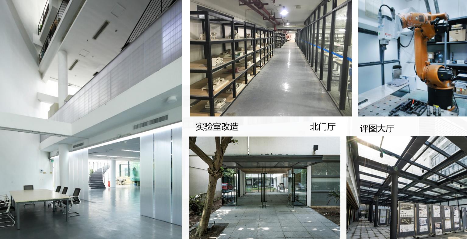 教学空间主要位于建筑与城市规划学院系馆与本原设计中心。结合教学特点,教学空间与“一横多纵”的教学模式相适配。现有1-2 年级横向组教室2间,3-5 年级建筑纵向组教室5间,3-5 年级规划及景观教室3间;共计2030㎡。设有一楼评图大厅,二楼中庭、二楼大平台及本原中心评图空间4处展示与评图空间,共计900 ㎡。为学生作业展示与评阅提供空间。