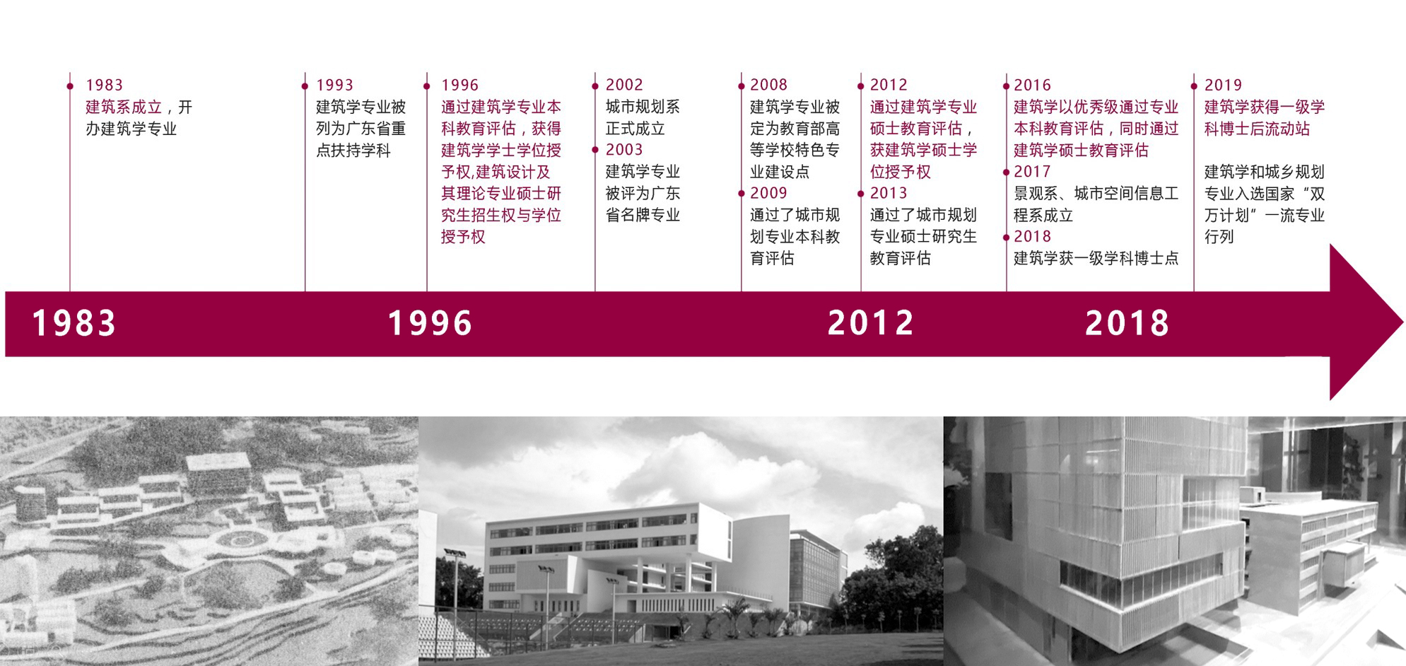 建筑学先后获得广东省优势重点学科、名牌专业、重点专业建设点、教育部特色专业建设点和首批国家级一流专业建设点。在软科2021中国最好学科排名中,我校建筑学专业位于全国第8名,广东省第2名;在全国第四轮学科评估中,建筑学排名为广东省第2位。建筑系以孟建民院士领衔,拥有范悦特聘教授、刘珩特聘教授等知名学者与著名建筑师组成的优秀团队。