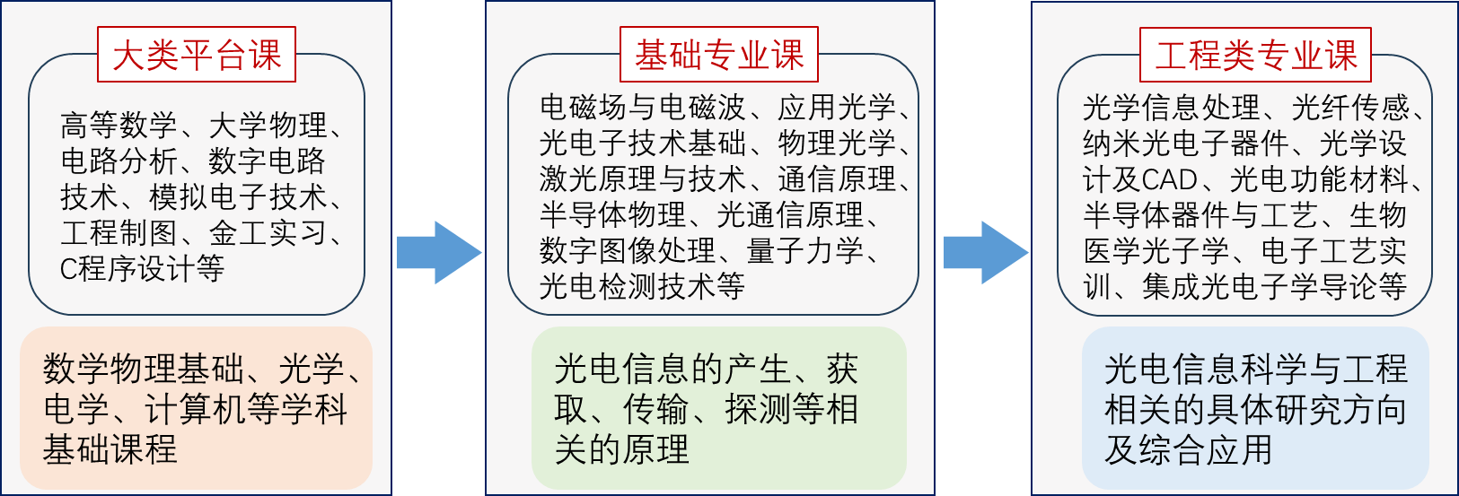 专业课程分为光电信息大类平台课、基础专业课及工程类专业课三大板块。课程内容广泛且知识点突出,涉及光学、微电子学、材料学、集成器件和光电系统筹方面的60余门专业课程。