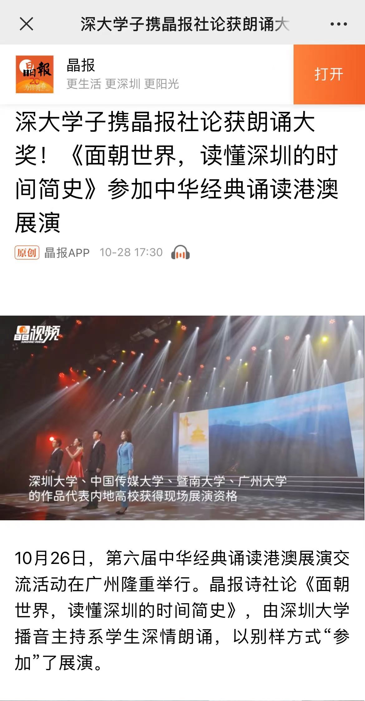 受邀参加第六届中华经典诵读港展演展演交流活动晶报App头版头条推送