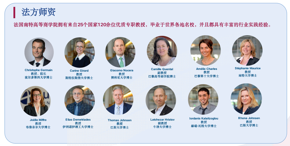 法国南特高等商学院是法国最早获得国际权威商学院认证的精英院校,同时具有EQUISAACSB和AMBA三项国际权威商学院认证属于全球1%同时获得三项认证的商学院。法国南特高等商学院连续多年被评为法国最好的10所商学院之一。学校隶属于法国工商会(CCI France),是一所非赢利性质的私立高等教育机构,也是第一所签署联合国全球契约的法国院校,参与制定联合国责任管理教育原则。法国南特高商在法国精英商学院录取系统SIGEM排名中,位居全法第7位;在2021《金融时报》排名中,被评为欧洲最佳商学院第31位。