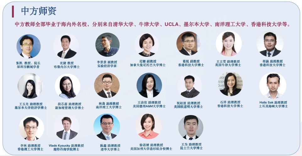 国际化师资队伍- 深圳大学深圳南特金融科技学院拥有一支毕业于清华大学、香港理工大学、香港科技大学、牛津大学、美国加州大学洛杉矶分校、南洋理工大学、墨尔本大学、昆士兰大学等国内外名校、教学经验丰富的师资团队,法国南特高等商学院拥有来自25个国家120余位优质专职教授,毕业于哥伦比亚大学、加利福尼亚大学、欧洲商学院等世界名校,并且都具有丰富的行业实践经验。