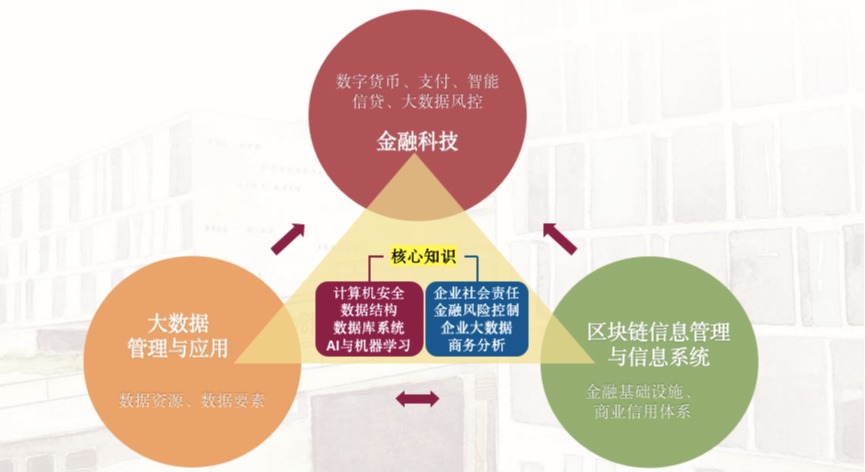 金融科技专业课程覆盖金融与计算机核心课程,侧重应用与实践,涉及多学科、多领域交叉培养,涵盖经济、金融、计算机等专业核心模块,培养学生运用现代金融管理知识及人工智能、区块链、云计算、大数据等现代信息技术处理金融科技行业实际业务能力。主要课程包括:金融科技导论、金融风险管理、数据库系统、金融计量学、人工智能与机器学习、金融基建概论、大数据与金融、公司金融、互联网法律和数据隐私、金融衍生品、计算机网络与安全等。